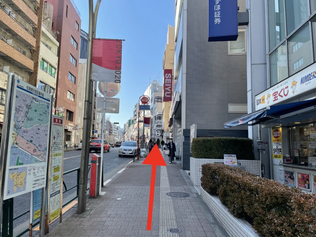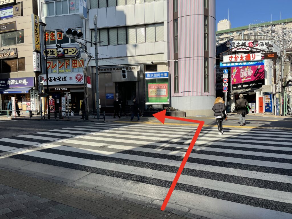 JR高田馬場駅・西武新宿線の早稲田口・東西線の1番出口を出て左側に進みます。