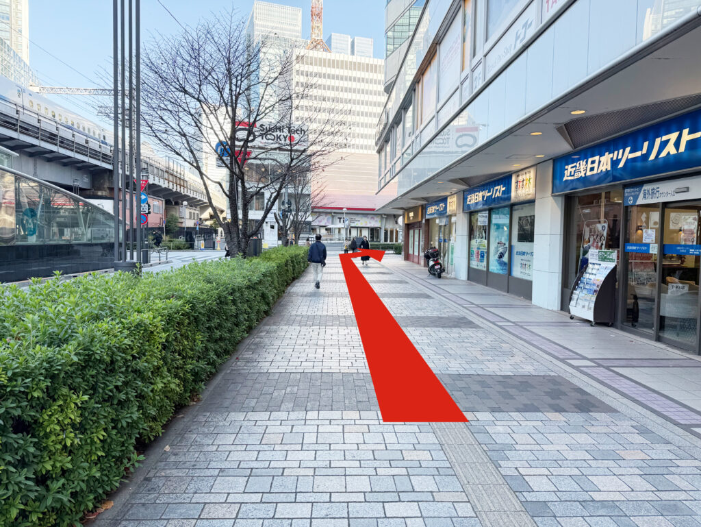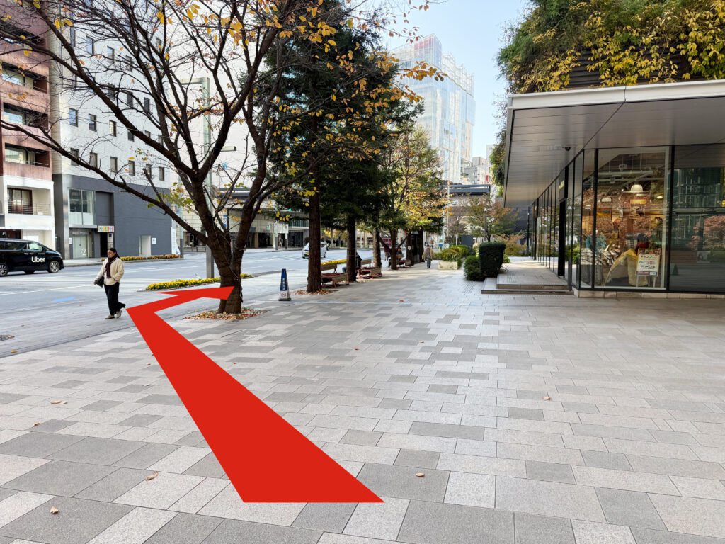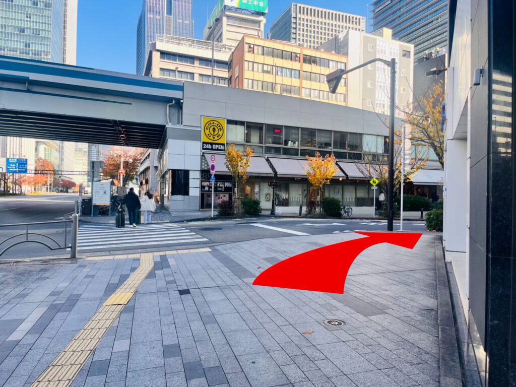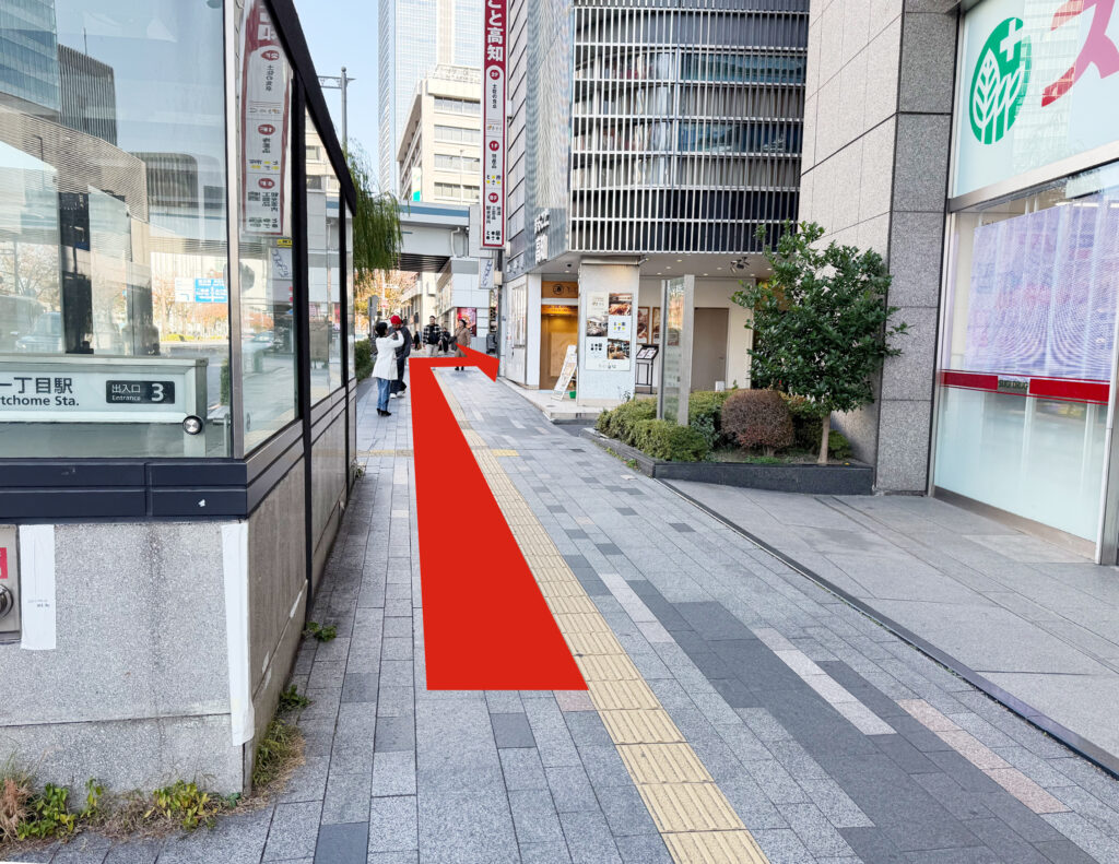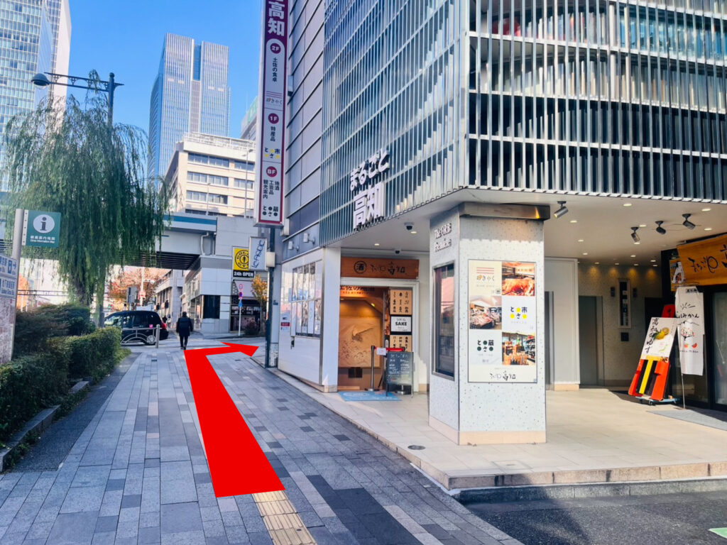 真っ直ぐ進み、高知のアンテナショップをこえて丁字路を右手に曲がります。
