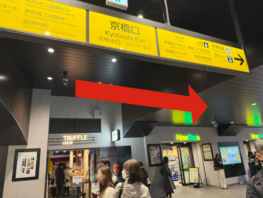 JR有楽町駅、京橋口の改札を出て右手に進みます。