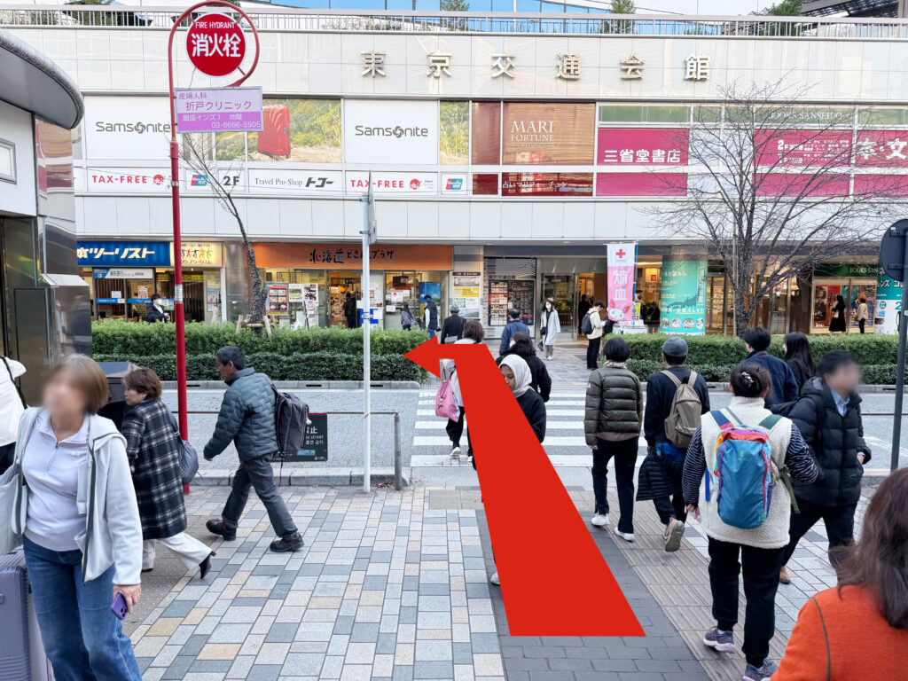 東京交通会館がございますので突き当たり左に曲がります。(北海道のアンテナショップが目