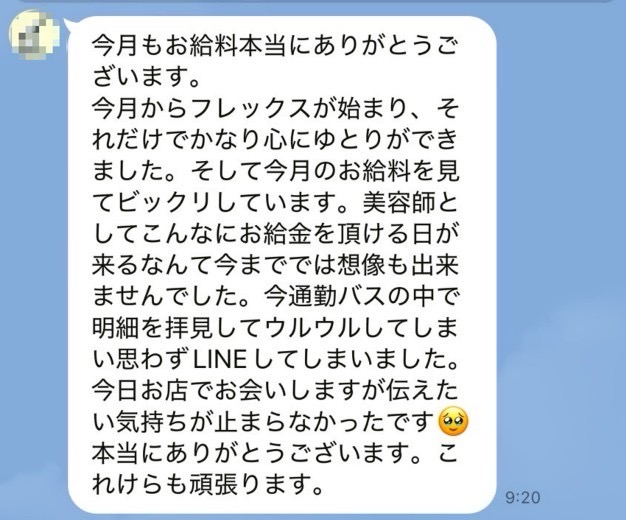 実際に働いているスタッフからも嬉しいLINEが来ています。